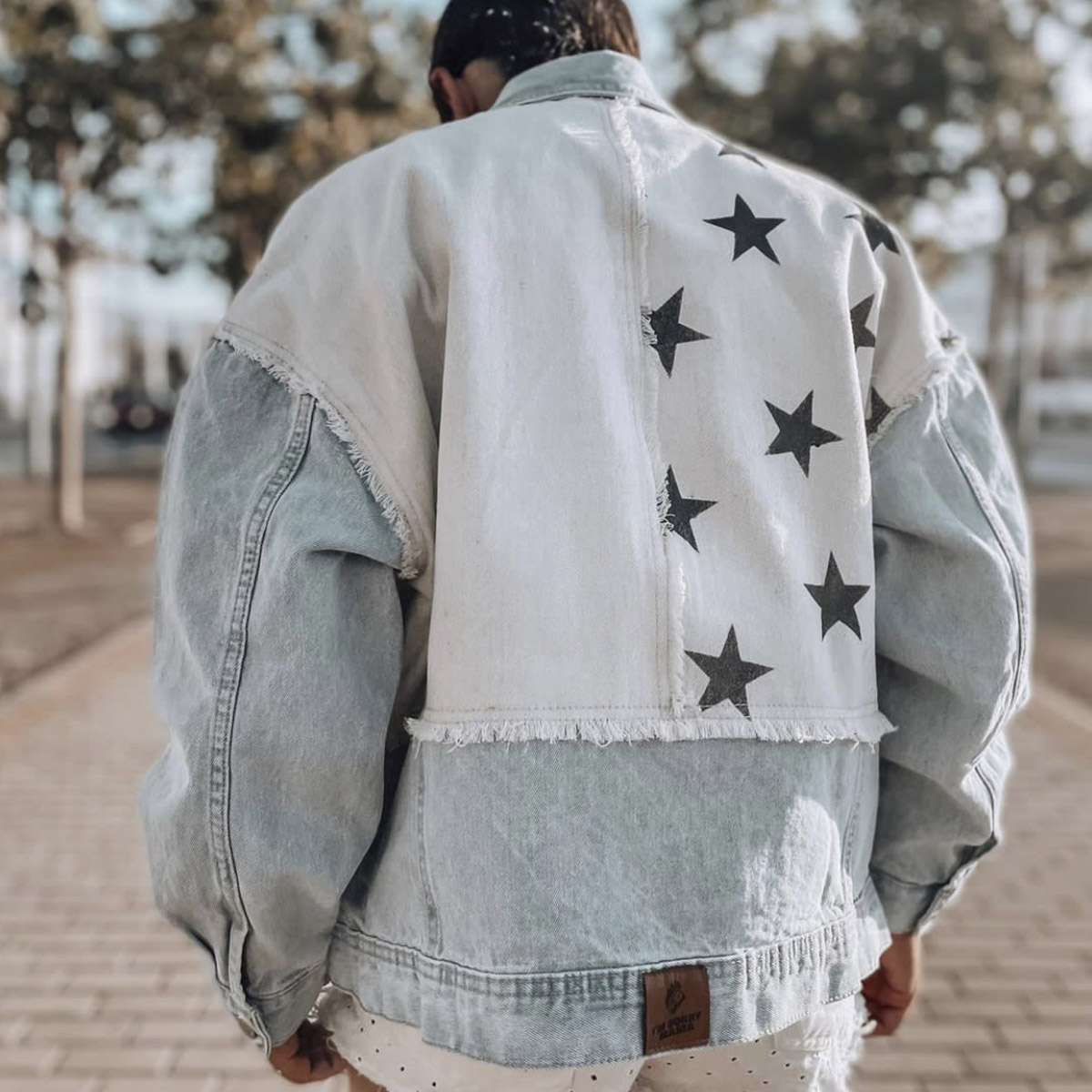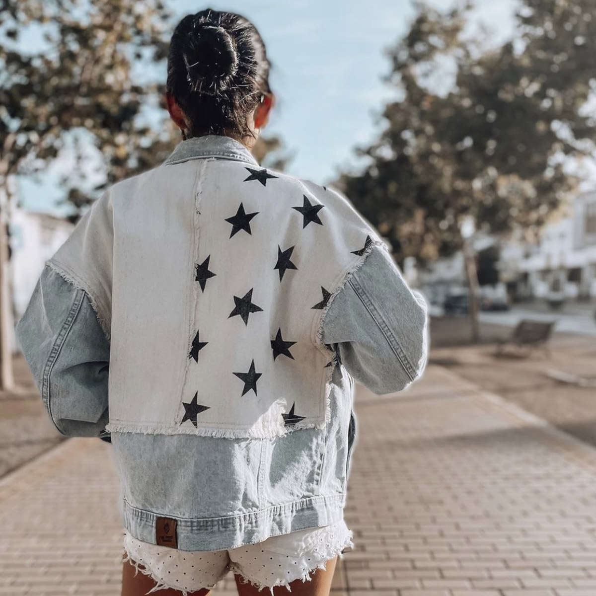 Chaqueta vaquera personalizada bajo encargo. Puedes elegir el color de la chaqueta, tela y estampación. ¡Esperamos tu idea!