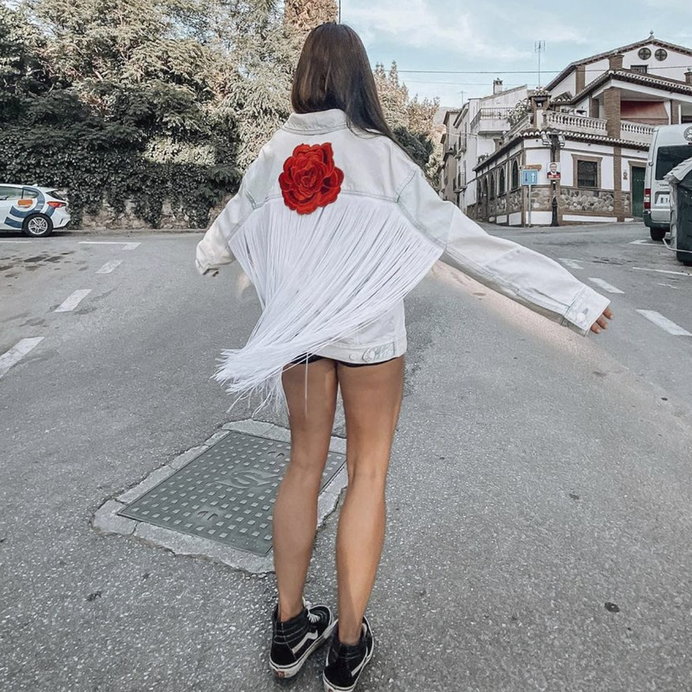 Chaqueta Personalizada con Flecos y Rosa